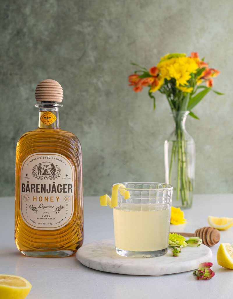 Fill a cocktail shaker with ice. Add the gin, lemon juice, and honey liqueur. Shake for 30 seconds and strain into a cocktail glass.